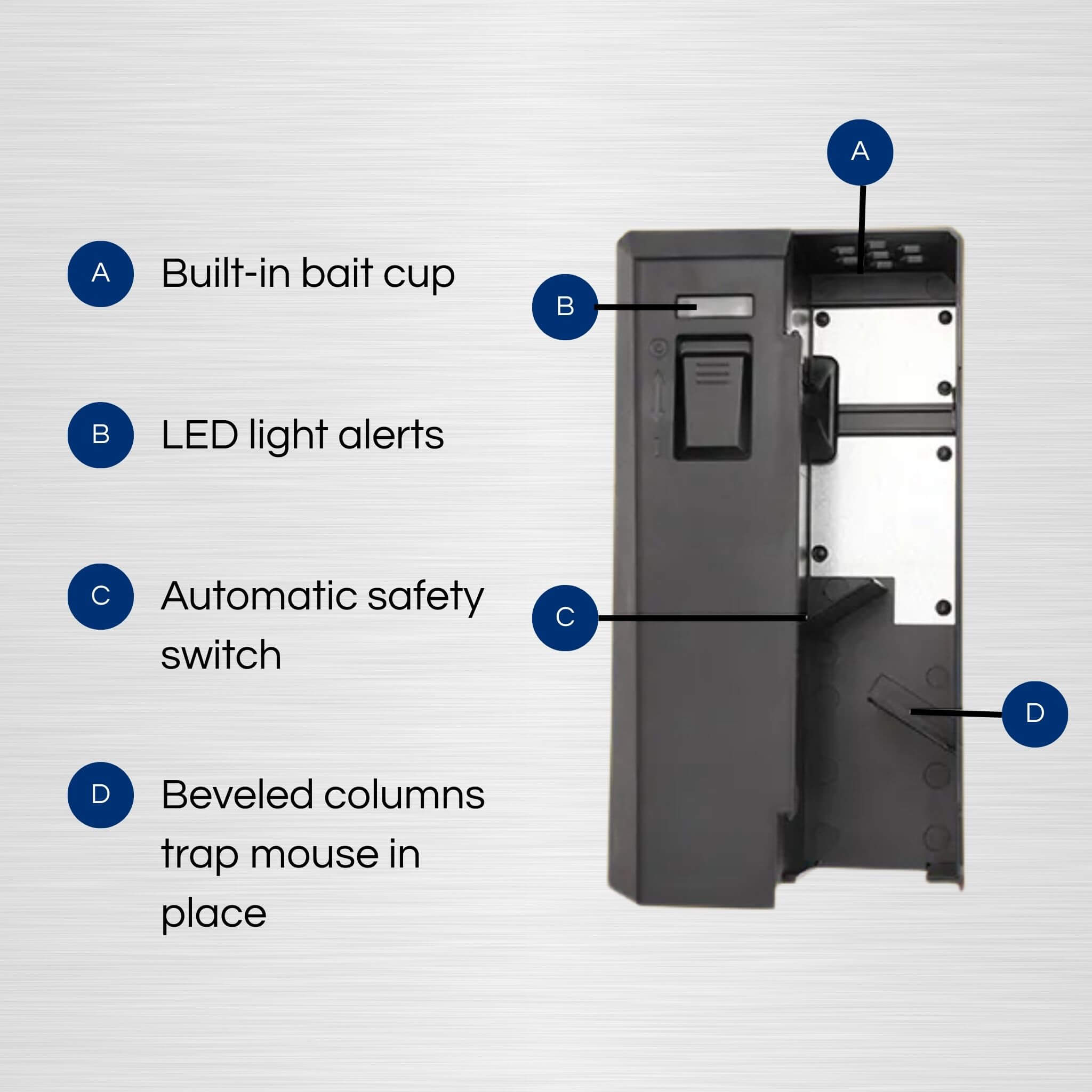 Each set of 4 AA batteries (not included) powers up to 100 kills, making it a long-lasting and cost-effective solution. The smart indicator light lets you know when a mouse has been caught, so you can act fast. For optimal success, pair with our non-toxic rodent attractant.